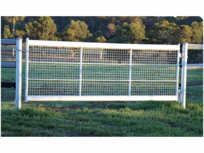 En riktigt rejäl galvad stålgrind med nätkonstruktion 50x50 mm designad för att minimera risken att hästar och föl fastnar med sina ben. Oval rail i ovan och under kant för god synlighet.